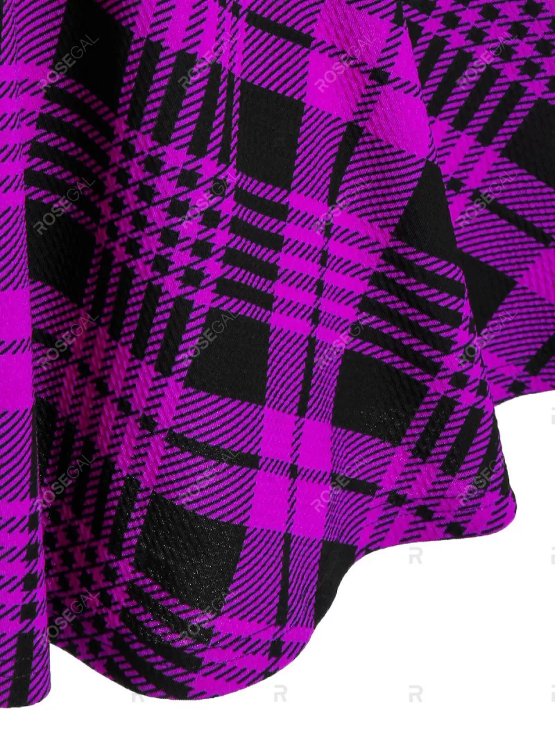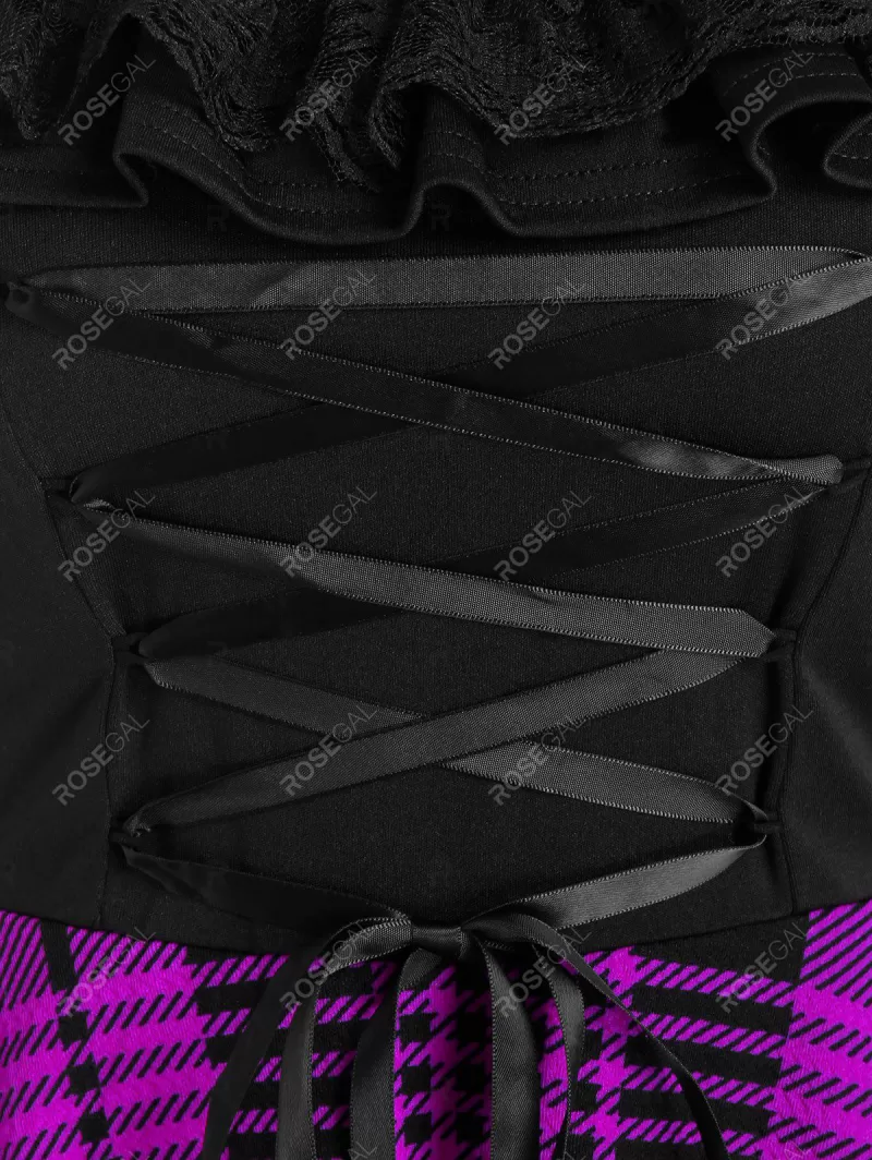 Plaid Print Lace-up Cat Ear Sleeveless Dress