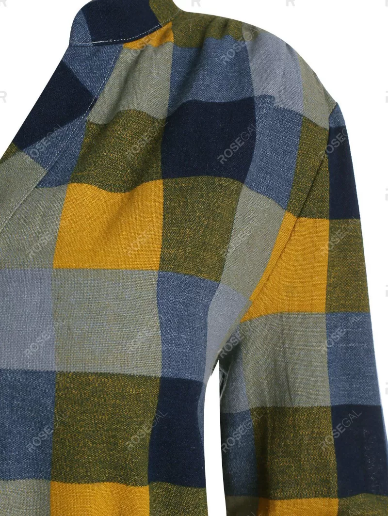 Half Button Plaid Print Belted Dress