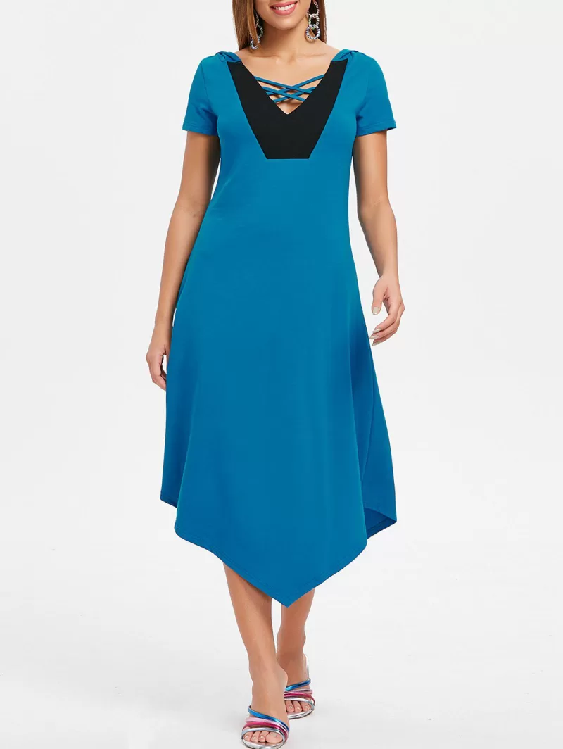 Asymmetrical Hooded Criss Cross Midi Dress