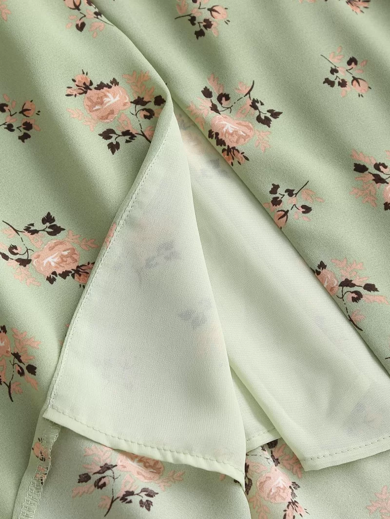 Bustier Front Slit Tie Shoulder Floral Dress