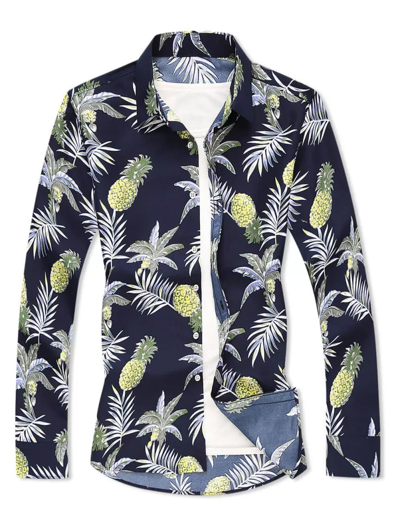 Tropical Leaf Pineapple Print Button Down Shirt