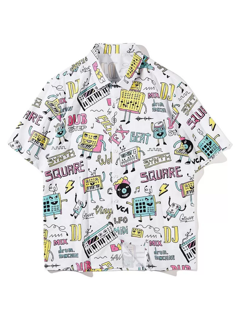 Cartoon Graffiti Graphic Short Sleeve Shirt