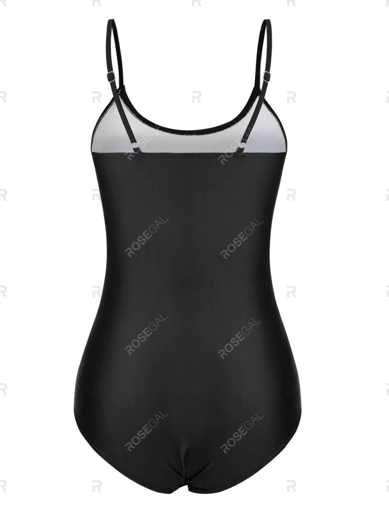 Cami Mesh Panel Solid One-piece Swimsuit