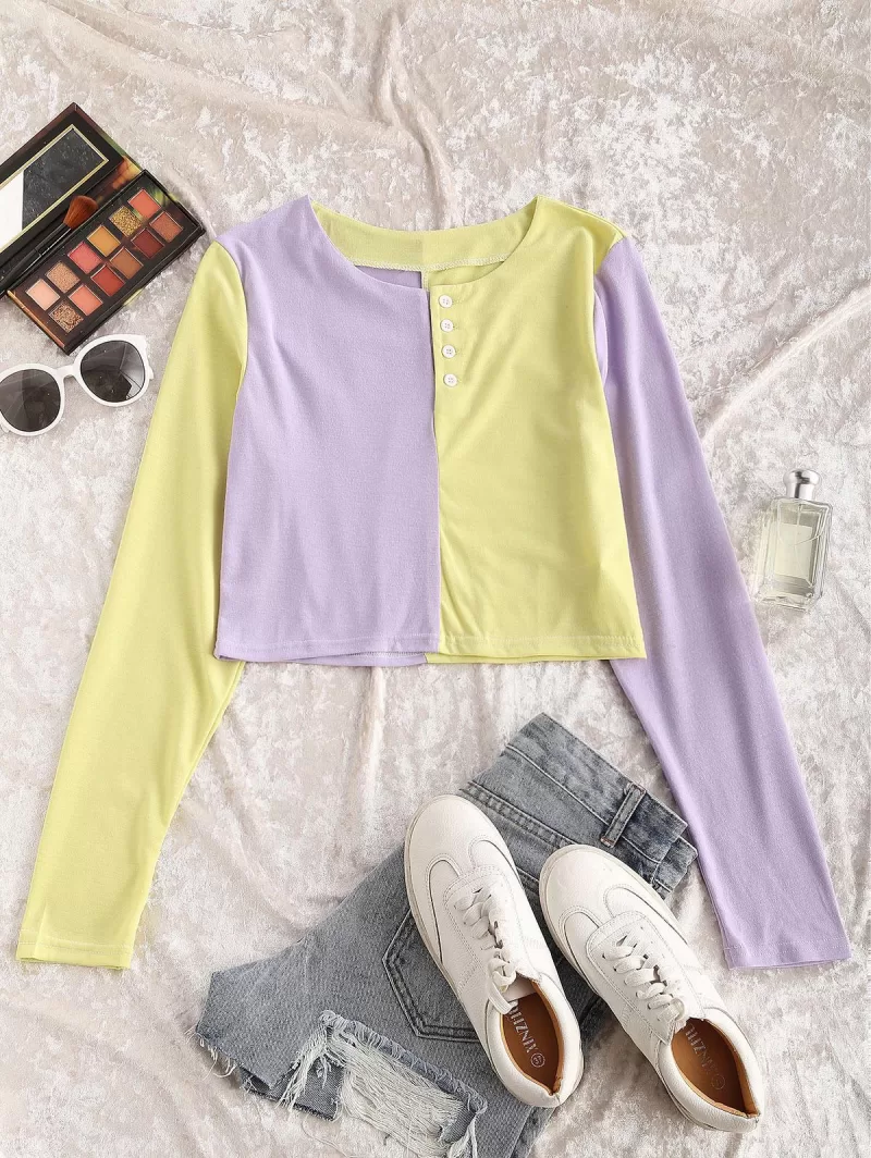 Add to wishlist Add to compare Quick view New Ribbed Colorblock Crop Twofer T Shirt Price $33.99 Add to cart