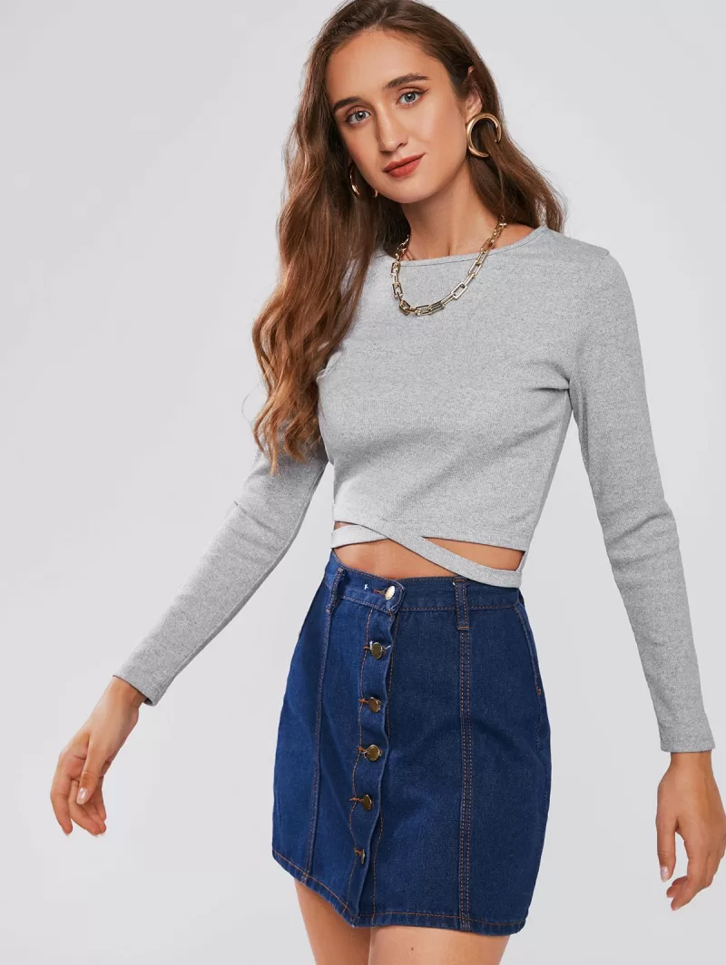 Criss Cross Cut Out Ribbed Tee