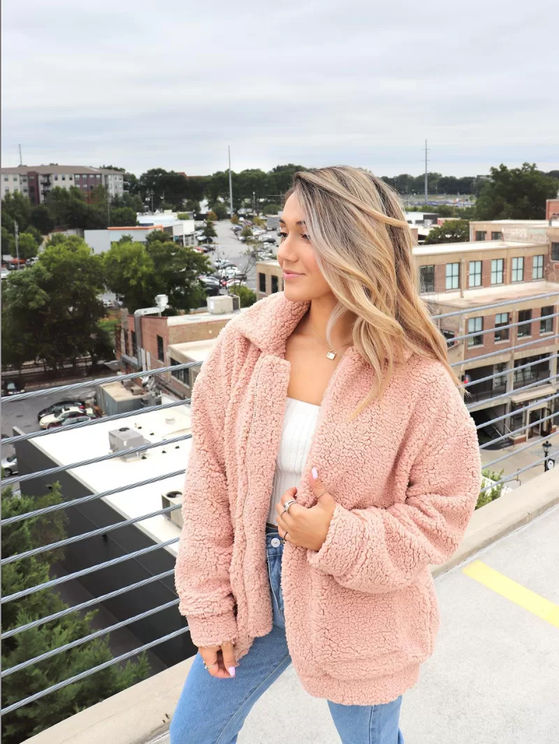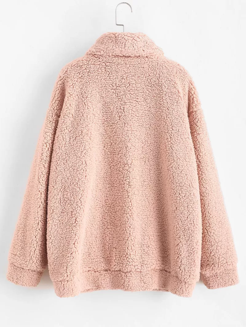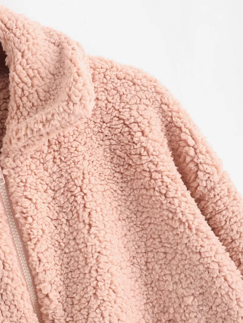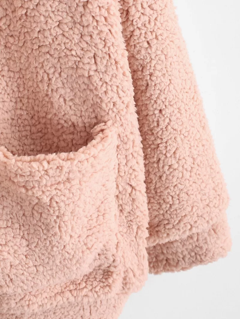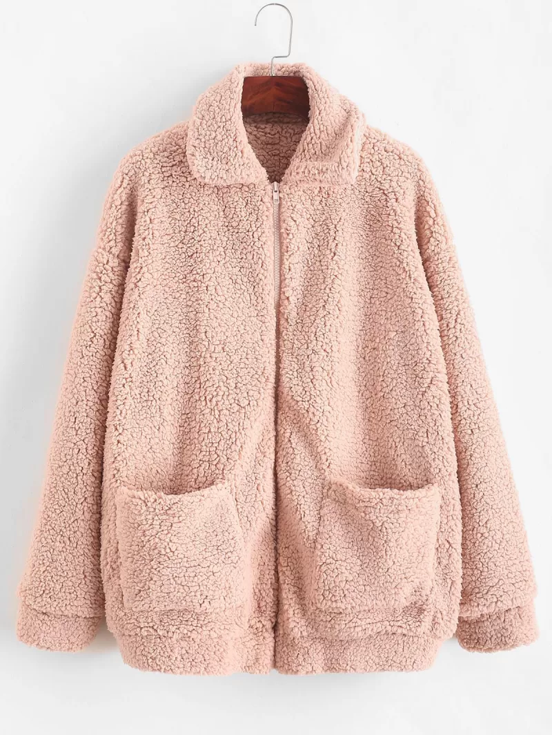 X Yasmine Bateman Pocket Zipper Drop Shoulder Fluffy Teddy Coat