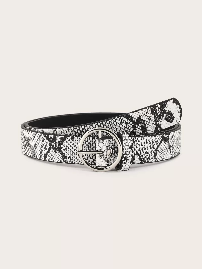 Snakeskin Pattern Circle Pin Buckle Belt